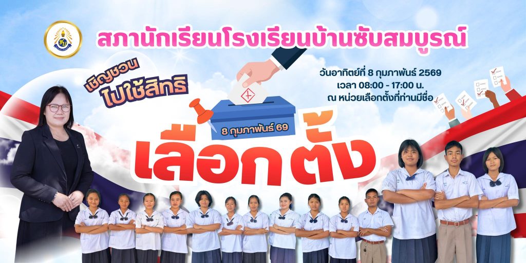 สภานักเรียนโรงเรียนบ้านซับสมบูรณ์ สพป.เพชรบูรณ์ เขต 3 เชิญชวนผู้มีสิทธิ ออกไปใช้สิทธิเลือกตั้ง สส. และออกเสียงประชามติ